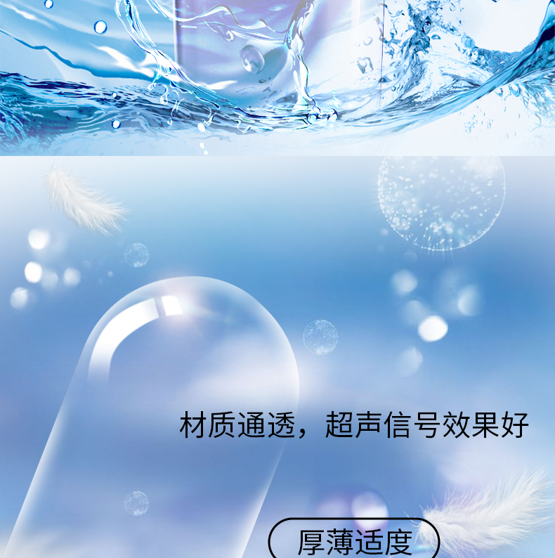 市面上一般的B超保護套要么像塑料紙一樣毫無彈性,使用時需要滴油、扎緊,程序繁瑣;要么就是材質厚,彈性差,無法與儀器緊貼,醫(yī)務人員操作不便的同時,患者檢測時體驗感也較差。而康祥實業(yè)避孕套彈性佳、強度大,可容納18L容量,綜合了國內外幾大品牌超聲探頭定型加工,滿足臨床腔內超聲檢查使用,自帶潤滑油,使用時操作簡便,能很好地使套體和B超探頭緊密貼合在一起,又薄又潤,能給患者帶來良好的體驗,還不會對B超結果產生影響。