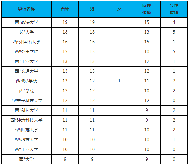 這是西北地區某省疾病預防控制中心最新公布的該省累計感染HIV(艾滋病毒)人數前15所高校名單。